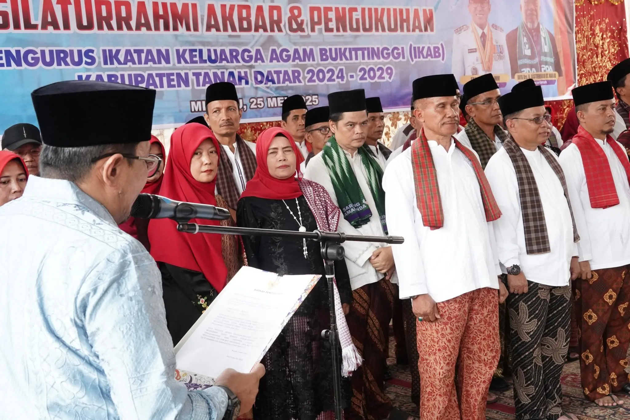 TANAH DATAR, Bacalahnews - Bupati Tanah Datar Eka Putra mengukuhkan kepengurusan Ikatan Keluarga Agam-Bukittinggi (IKAB) periode 2024 - 2029 di Gazebo Indojolito Batusangkar, Minggu (25/5/2025).Bupati menyampaikan ucapan selamat kepada seluruh pengurus IKAB Tanah Datar.