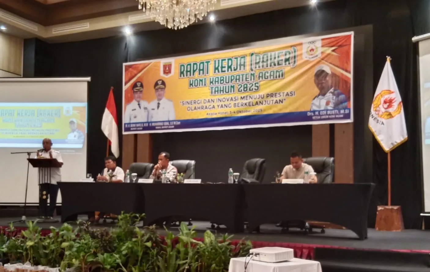 AGAM, Bacalah News — Komite Olahraga Nasional Indonesia (KONI) Kabupaten Agam menegaskan komitmennya untuk memperkuat pembinaan atlet dan menegakkan disiplin administrasi cabang olahraga (Cabor). Hal itu menjadi hasil utama Rapat Kerja (Raker) KONI Agam 2025 yang digelar di Hotel Axana, Kota Padang, Jumat–Sabtu (3–4/10).Ketua Harian KONI Agam, Asrial, mengatakan Cabor yang aktif melakukan pembinaan dan mengirimkan proposal kegiatan sesuai kebutuhan akan tetap mendapatkan bantuan dana pembinaan. Namun, Cabor yang masa berlaku Surat Keputusan (SK)-nya telah habis dan tidak diperpanjang hingga November 2025 tidak lagi bisa menerima bantuan.