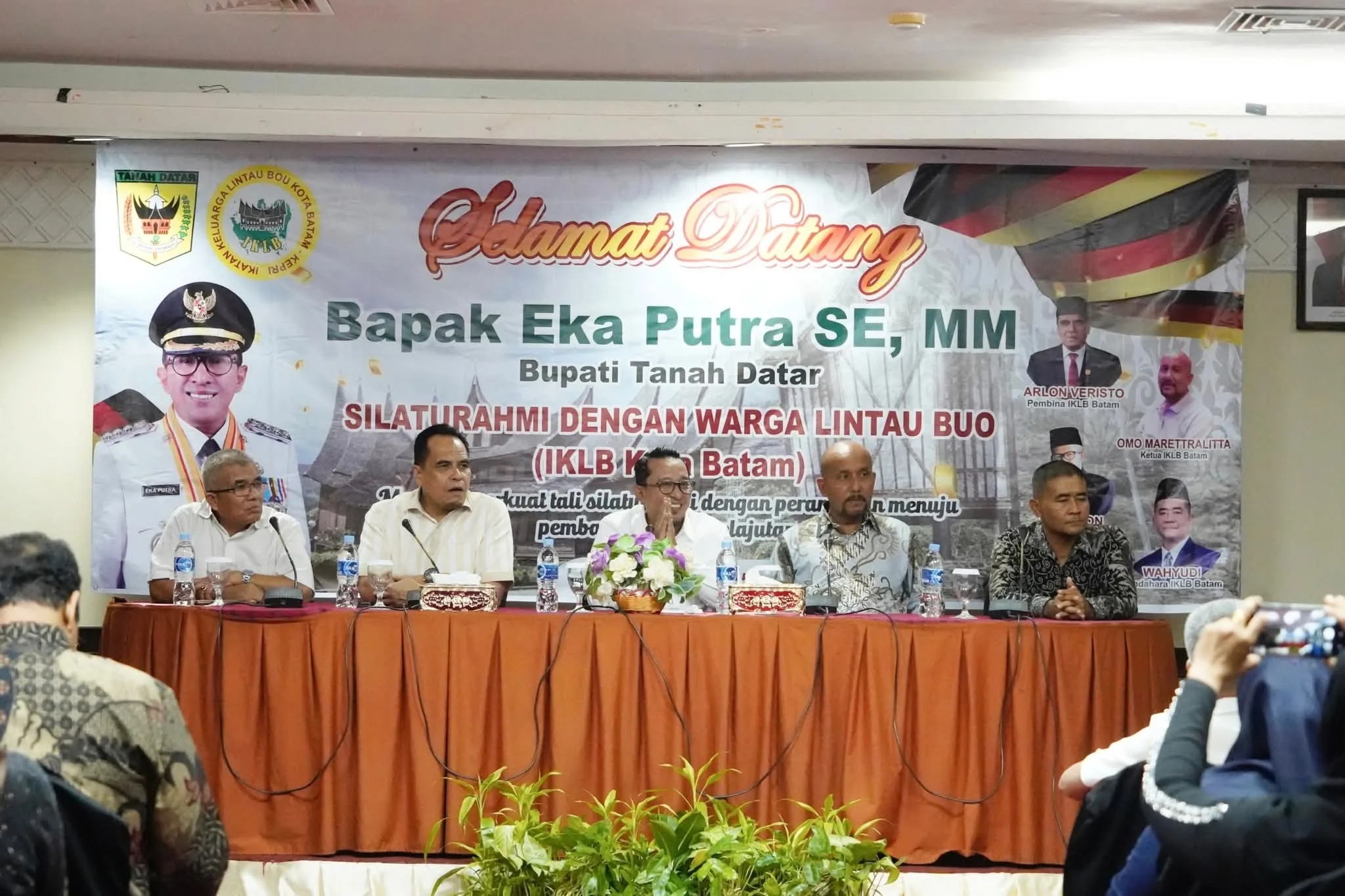 Bupati menyampaikan informasi program unggulan Pemkab Tanah Datar dibawah kepemimpinannya. Diantara di bidang pertanian, kesehatan, pendidikan, keagamaan dan juga bidang ekonomi.Ketua IKLB Kota Batam Ommo Marettralitta menyampaikan terima kasih kepada Bupati Eka Putra dan rombongan yang telah bersedia untuk bertemu dan bersilaturahmi bersama seluruh perantau yang tergabung dalam organisasi IKLB Kota Batam. (fantau) Editor : Mangindo Kayo