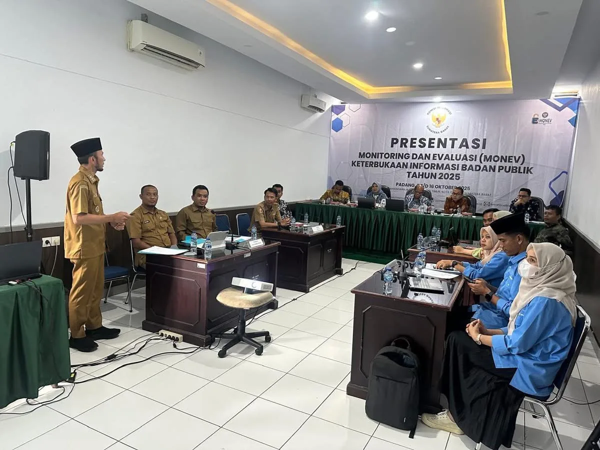 PADANG – Kota Padang Panjang berhasil masuk nominasi 10 besar Monitoring dan Evaluasi (Monev) Keterbukaan Informasi Publik 2025. Sebagai tahapan lanjutan, Wakil Wali Kota, Allex Saputra, menyampaikan presentasi di hadapan Tim Panelis Komisi Informasi (KI) Sumatera Barat di Ruang Sidang KI, Kota Padang, Selasa (7/10).Turut mendampingi, Plt Kadis Kominfo, Fhandy Ramadhona, serta Pranata Humas Ahli Muda, Harry Sulistio. Presentasi ini menjadi kelanjutan setelah tahapan pengisian kuesioner, untuk menentukan badan publik yang berhak maju ke tahap visitasi sekaligus penilaian akhir Kota Informatif.