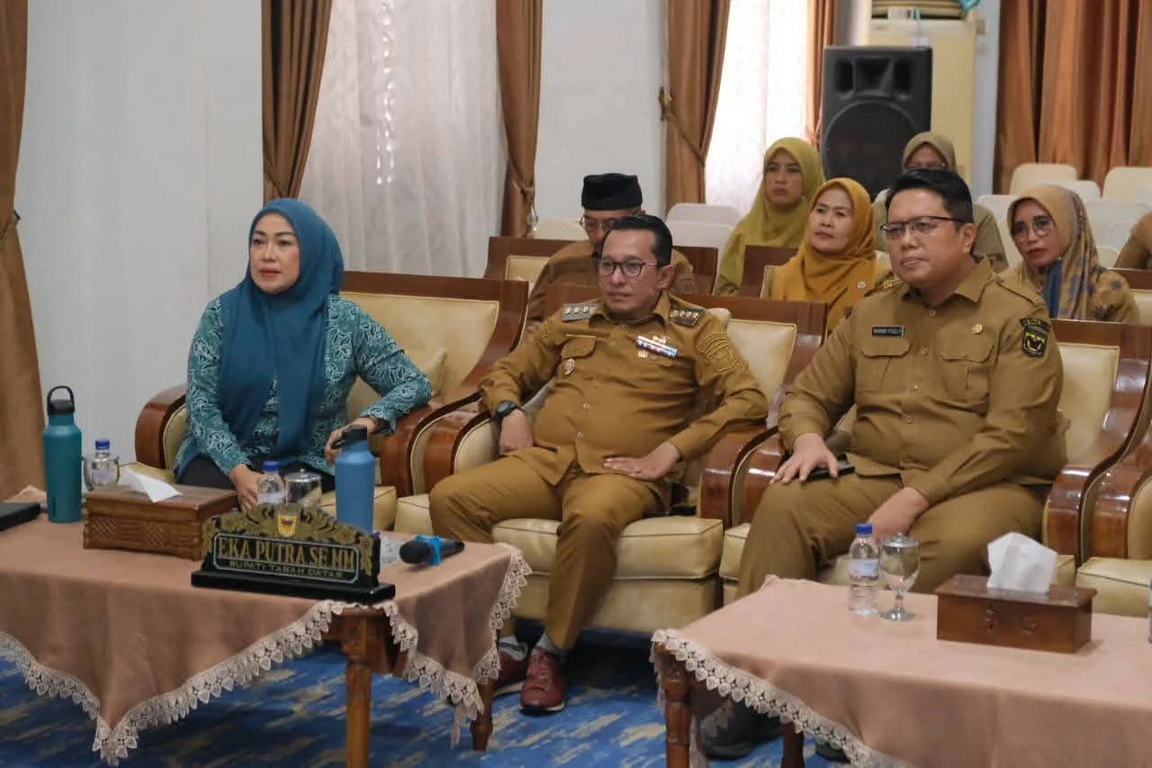 TANAH DATAR, Bacalahnews - Bupati Tanah Datar Eka Putra bersama Wabup Ahmad Fadly, Sekda Abdurrahman Hadi, Ketua TP PKK Ny. Lise Eka Putra, Ketua GOW Ny. Nanda Ahmad Fadly, Kadis Kesehatan Yesrita Zedrianis, Kadis Pendidikan Inhendri Abbas dan OPD terkait ikuti Rapat Koordinasi (Rakor) secara daring di Indojolito Batusangkar, Senin (29/9/2025).Rakor yang dipimpin Mendagri M. Tito Karnavian bersama Menko PMK Pratikno, Menkes Budi Gunandi Sadikin, Wakil Badan Gizi Nasional membahas tentang Program Makan Bergizi Gratis (MBG) dan Percepatan Penuntasan Tuberkolosis atau penyakit TBC.