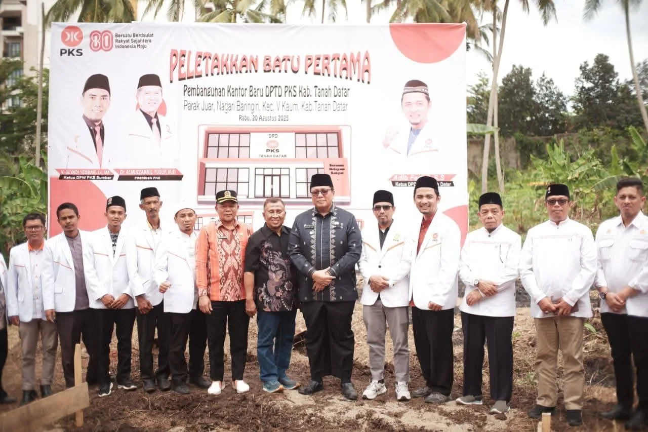 TANAH DATAR, Bacalahnews - Wakil Bupati Tanah Datar Ahmad Fadly meletakan batu pertama pembangunan Kantor DPTD PKS Tanah Datar di Jorong Parak Juar Nagari Baringin, Kecamatan Limo Kaum, Rabu (20/8/2025).Wabup Ahmad Fadly menyampaikan apresiasi kepada PKS atas pembangunan kantor baru tersebut.