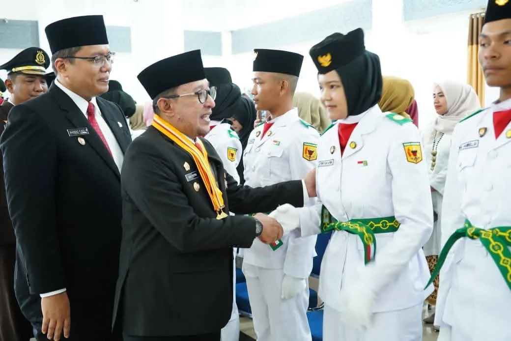 TANAH DATAR, Bacalahnews - Sebanyak 63 calon Pasukan Pengibar Bendera Pusaka (Paskibraka) Kabupaten Tanah Datar Tahun 2025 dikukuhkan Bupati Tanah Datar Eka Putra, Sabtu (16/8/2025) di Gedung Nasional Maharajo Dirajo Batusangkar.Pengukuhan turut disaksikan Ketua DPRD Anton Yondra bersama Forkopimda Tanah Datar, Sekda, Kepala OPD, Kepala Sekolah, orang tua dan wali anggota Paskibraka serta undangan lainnya.