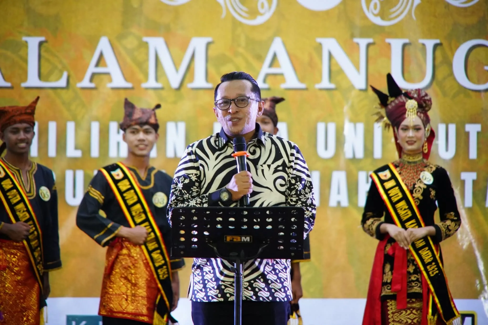 TANAH DATAR, Bacalahnews - Bupati Eka Putra membuka acara malam anugerah Uda Uni Duta Wisata Kabupaten Tanah Datar tahun 2025, di Gedung Nasional Maharajo Dirajo Batusangkar, Sabtu (9/8/2025).Pada malam anugerah Uda Uni Duta Wisata Kabupaten Tanah Datar tahun 2025 tersebut, sebanyak 12 pasang finalis menampilkan atraksi bakat, kreatifitas, kemampuan intelektual dan jiwa keteladanan generasi muda.