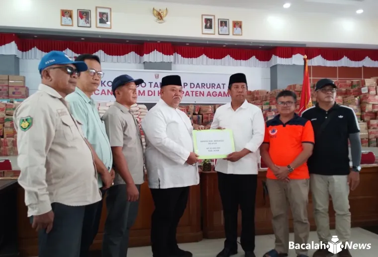 Bantuan berupa uang tunai sebesar Rp 50 juta diserahkan secara simbolis oleh Bupati Bengkulu Selatan kepada Sekretaris Daerah Kabupaten Agam, Dr. M. Lutfi AR, di Posko Utama Tanggap Darurat Balairong Rumah Dinas Bupati Agam, Jumat (19/12/2025) sore.