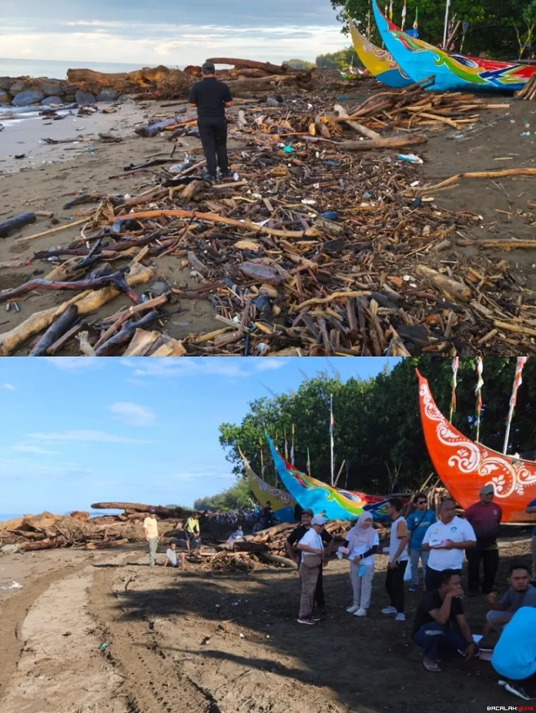 JAKARTA (23/12/2025) - Direktorat Jendral (Dirjen) Pengelolaan Kelautan Kementrian Kelautan dan Perikanan (KKP) pimpin aksi pembersihan Pantai Muaro Gantiang, Kelurahan Air Tawar Barat, Kecamatan Padang Utara dari tumpukan sampah kayu yang hanyut akibat banjir bandang tanggal 28 November 2025 dinihari.