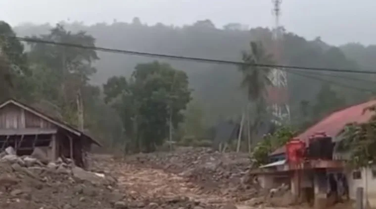 Curah hujan tinggi yang mengguyur wilayah Maninjau sejak siang memicu aliran lumpur, bebatuan, dan kayu kembali menutup badan jalan. Sebagian material bahkan meluap hingga ke permukiman warga di sekitar lokasi.