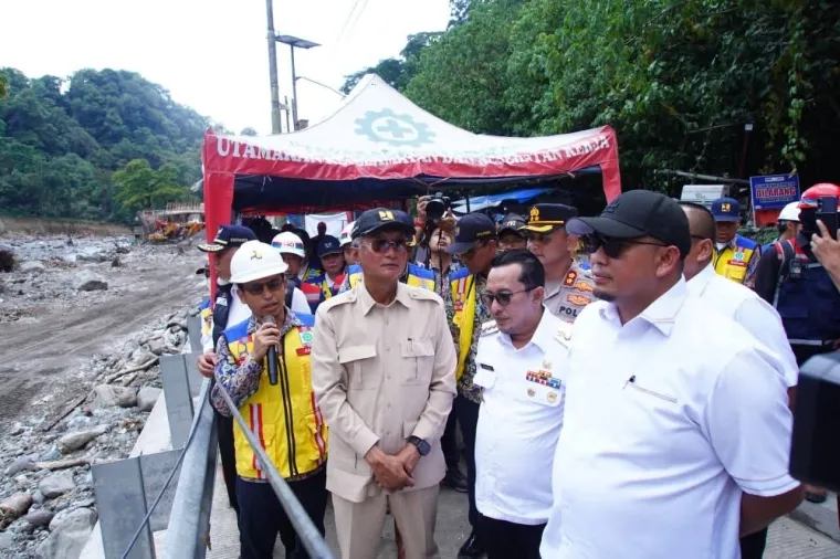 TANAH DATAR, Bacalahnews - Menteri Pekerjaan Umum Dody Hanggodo bersama Wakil Ketua Komisi VI DPR Andre Rosiade meninjau progres pengerjaan jalan Lembah Anai, Rabu (28/1/2026).