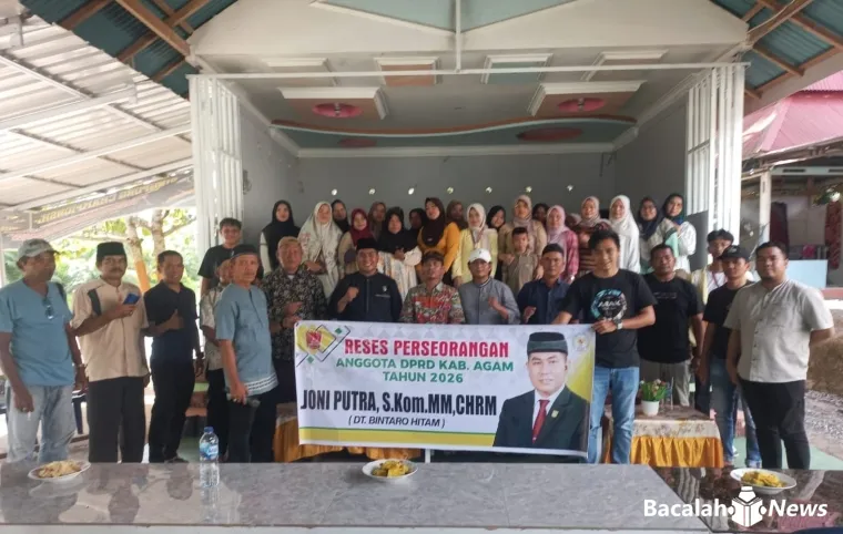 KABUPATEN AGAM – Anggota DPRD Kabupaten Agam dari Fraksi Golkar, Joni Putra, S.Kom., MM., CHRM., Dt. Bintaro Hitam, menyerap aspirasi masyarakat Nagari Manggopoh dalam kegiatan reses yang digelar di Objek Wisata Garuda Mas, Jorong Batu Hampar, Kecamatan Lubuk Basung, Jumat (30/1/2026).