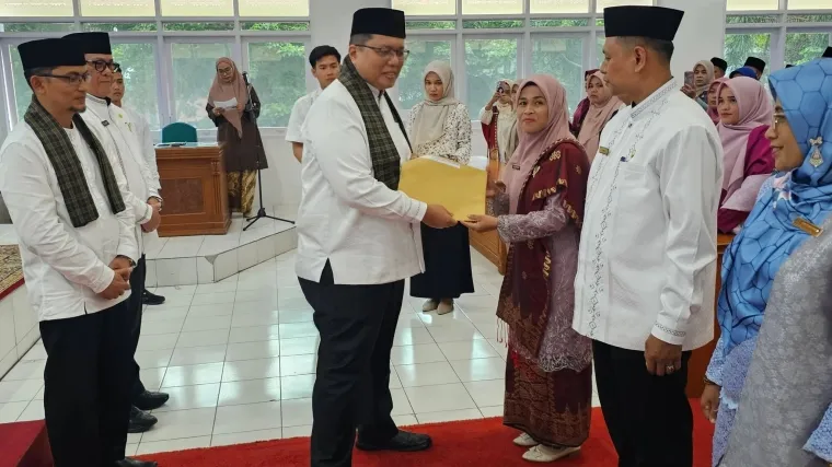 TANAH DATAR, Bacalahnews - Wakil Bupati Tanah Datar Ahmad Fadly menyerahkan SK kepada 133 Kepala UPT TK Negeri, SD Negeri dan SMP Negeri, di Aula Kantor Bupati Pagaruyung, Jumat (20/2/2026).