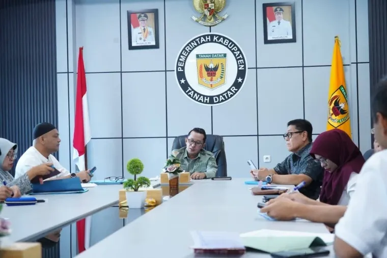 TANAHDATAR, Bacalahnews - Bupati Tanah Datar Eka Putra mengikuti Rakor Tingkat Menteri Satuan Tugas Rehab dan Rekontruksi (Satgas RR) Pascabencana secara virtual di Ruang Rapat Kantor Bupati, Jumat (27/2/2026).