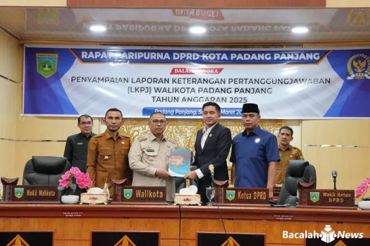 PADANG PANJANG — Wali Kota Hendri Arnis menyampaikan Laporan Keterangan Pertanggungjawaban (LKPJ) Tahun Anggaran 2025 dalam Rapat Paripurna DPRD, Senin (30/3/2026).