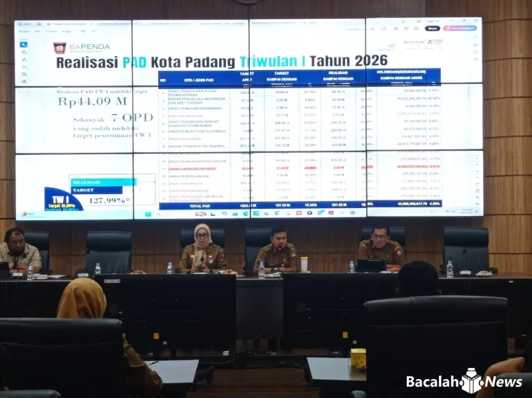 Capaian positif ini disampaikan dalam Rapat Realisasi PAD Triwulan I Pemko Padang yang berlangsung di Ruang Abu Bakar Jaar, Balaikota Padang, Aia Pacah, Selasa (31/3/2026). Rapat tersebut dipimpin Asisten II Setdako Padang, Didi Aryadi.