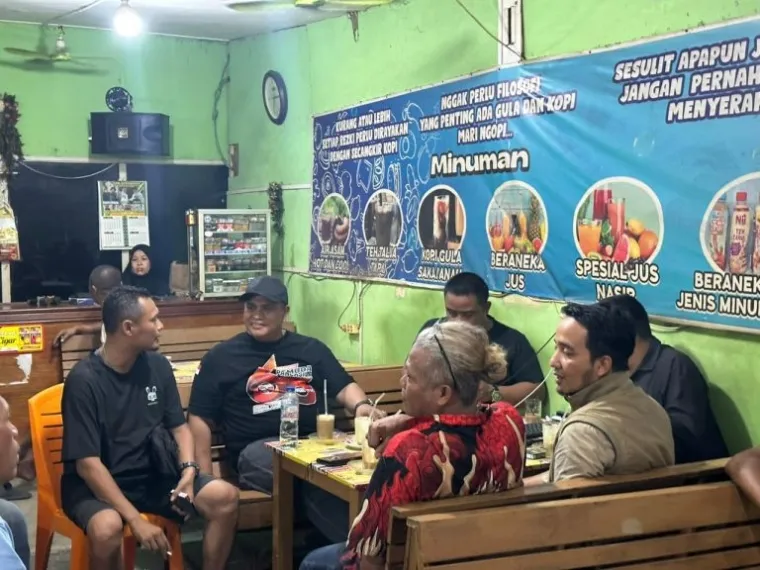Diskusi berlangsung santai di sebuah lapau sambil menikmati Teh Talua dengan pembahasan berbagai isu strategis mulai dari penguatan organisasi wartawan hingga peran pers dalam percepatan pemulihan pascabencana.