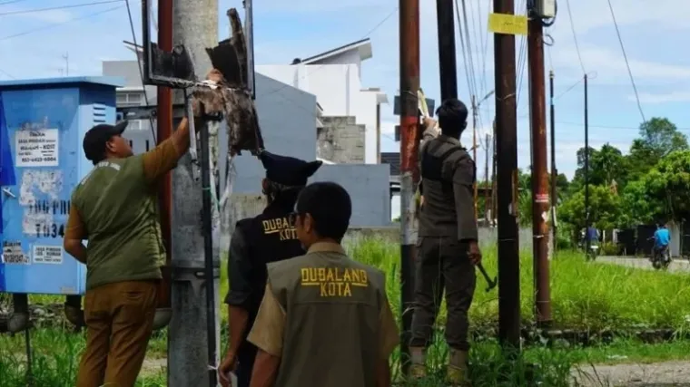 Petugas melakukan penyisiran di sejumlah titik yang dipenuhi spanduk ilegal sebagai langkah mengembalikan ketertiban lingkungan sekaligus menjaga keindahan kawasan perkotaan.
