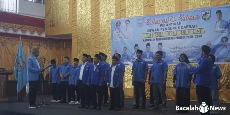 PASAMAN BARAT -- Dewan Pengurus Daerah (DPD) Komite Nasional Pemuda Indonesia (KNPI) Kabupaten Pasaman Barat periode 2025–2028 resmi dilantik oleh Ketua KNPI Sumatera Barat, Angga Azkardha, di Aula Kantor Bupati Pasaman Barat, Senin (27/4/2026).