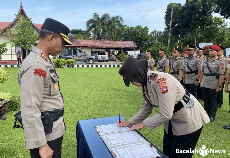 Serah terima jabatan (sertijab) tersebut digelar dalam upacara khidmat dipimpin langsung oleh Kapolres Agam AKBP Muari dan diikuti seluruh pejabat utama, personel, serta ASN Polres Agam di halaman Mapolres Agam, Rabu (29/4/2026),