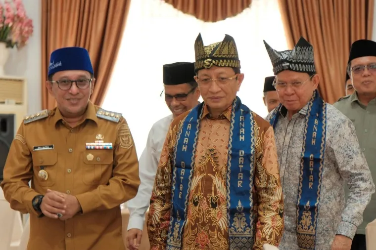 TANAH DATAR, Bacalahnews - Bupati Tanah Datar Eka Putra membahas program keagamaan bersama Menteri Agama Nasaruddin Umar di Gedung Indojolito Batusangkar, Selasa (28/4/2026).