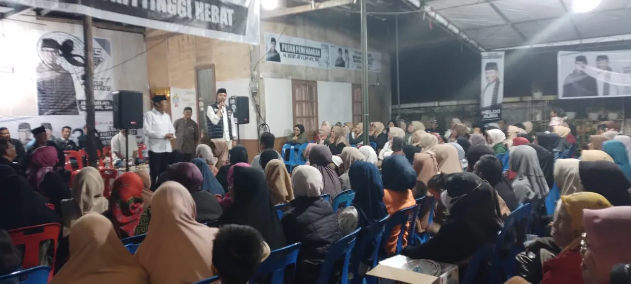 Hal itu disampaikan Erman Safar, calon Walikota Bukittinggi incumbent di hadapan hampir seribu orang warga Pintu Kabun, yang memenuhi tempat sosialisasi visi misi paslon 03, Kamis (24/10/2024).Kegiatan sosialisasi paslon Walikota Erman Safar dengan wakil Heldo Aura turun bersama tim dan juru kampanye Tasmon dan Rusdy Nurman. Sosialisasi visi misi dan program juga dihadiri tokoh masyarakat setempat.berlangsung sampai pukul 22.00 WIB.