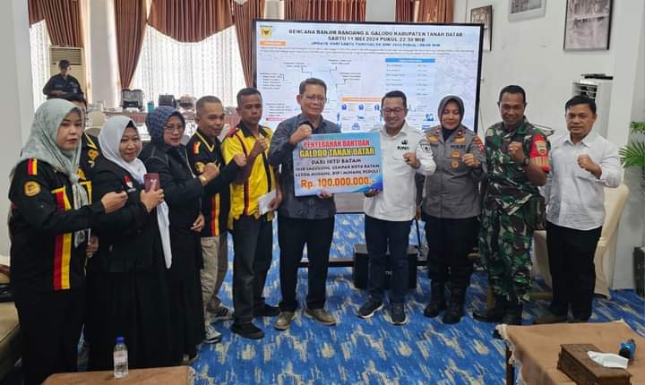 TANAHDATAR, Bacalahnews - Meskipun sudah cukup lama berlalu Bencana Banjir Bandang dan Galodo, tidak menyurutkan perantau untuk menyalurkan bantuan kepada korban bencana dan masyarakat yang terdampak.Ketua IKTD Batam Jalfriman menyerahkan bantuan secara simbolis kepada Bupati Tanah Datar Eka Putra, Rabu (26/6/2024) di Indojolito Batusangkar.