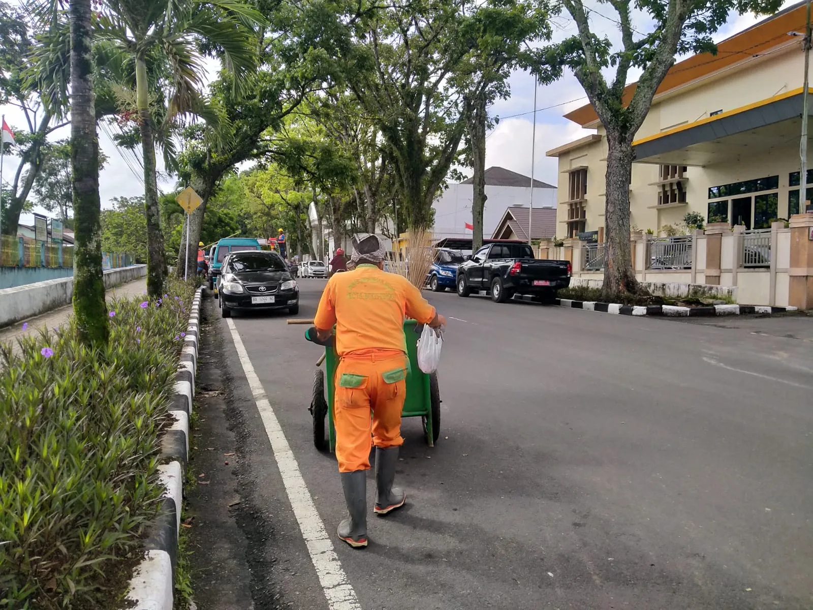 Seragam orenge ia pakai mulai memudar. Sapu lidi ia pegang di tangan kanannya. Langkahnya pelan dan mata selalu di arahkan melihat ke bagian bawah jalan.Dedaunan dari pohon pelindung jalan yang gugur disapunya hingga terkumpul tidak lagi berserakan. Pekerjaan itu ia jalani mulai dari Simpang Yarsi, Jl Sudirman hingga ruas jalan dekat rumah Dinas Wali Kota Bukittinggi.