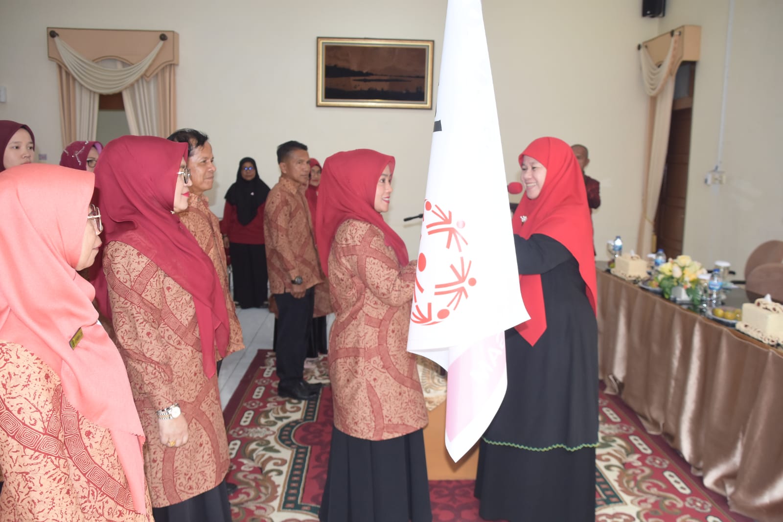 Ketua Umum Special Olympics Indonesia (SOIna) Provinsi Sumatera Barat, yang sengaja datang dan mengunjungi Kabupaten Agam untuk melakukan pelantikan pengurus SOIna Kabupaten Agam sekaligus melakukan penandatanganan berita acara serta menyerahkan bendera pataka SOIna kepada Ny.Yeni Andri Warman di Mess Pemkab Agam Belakang Balok, Bukittinggi, Jumat (22/9/2023).SOIna adalah suatu organisasi keolahragaan dan sosial nirlaba yang menangani pembinaan dan