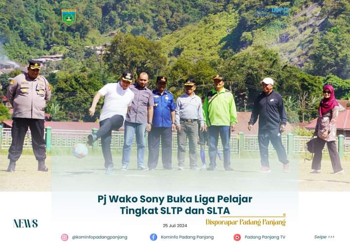 PADANG PANJANG -- Guna melahirkan talenta muda yang potensial di bidang sepak bola, Pemko melalui Dinas Pemuda, Olahraga dan Pariwisata (Disporapar) kembali menggelar Liga Pelajar Tingkat SLTP dan SLTA se-Kota Padang Panjang.Turnamen yang berlangsung selama satu bulan ke depan tersebut dibuka Penjabat (Pj) Wali Kota, Sonny Budaya Putra, A.P, M.Si di Lapangan Khatib Sulaiman Bancalaweh, Kamis (25/7/2024).