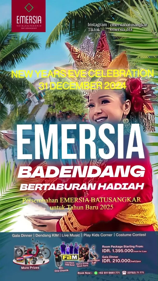 "Pesan sekarang sebelum tanggal 27 Desember 2024 dan dapatkan potongan 15 persen untuk paket kamar dan 10 persen untuk paket Gala Dinner," tutur Joe.Untuk pemesanan dapat menghubungi kami di nomor Telepon 0752-71771, WhatsApp 0811–6661 771, IG/FB. @emersiabatusangkar, atau Tiktok. @emersia_bts.