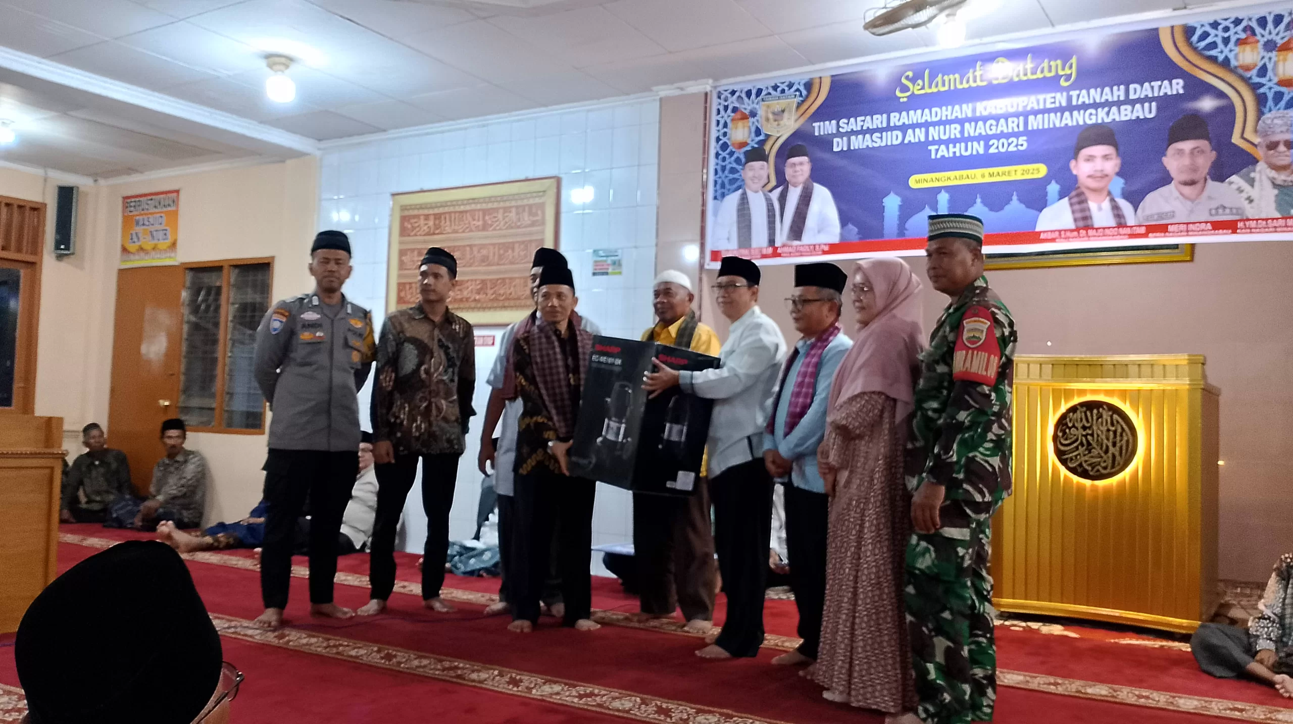 “Diminta jamaah, bijaklah dalam menerima informasi dari media sosial, pastikan kebenarannya, jangan percaya dan bahkan menyebarkan informasi yang belum tentu kebenarannya, yang tentunya juga dapat mengganggu keamanan dan kenyamanan dalam masyarakat,” tutur Jasrinaldi. Sementara itu, Wali Nagari Minangkabau Akbar Datuak Majo Nan Itam mengucapkan selamat datang kepada Asisten Setdakab Tanah Datar bersama Tim Safari Ramadan.